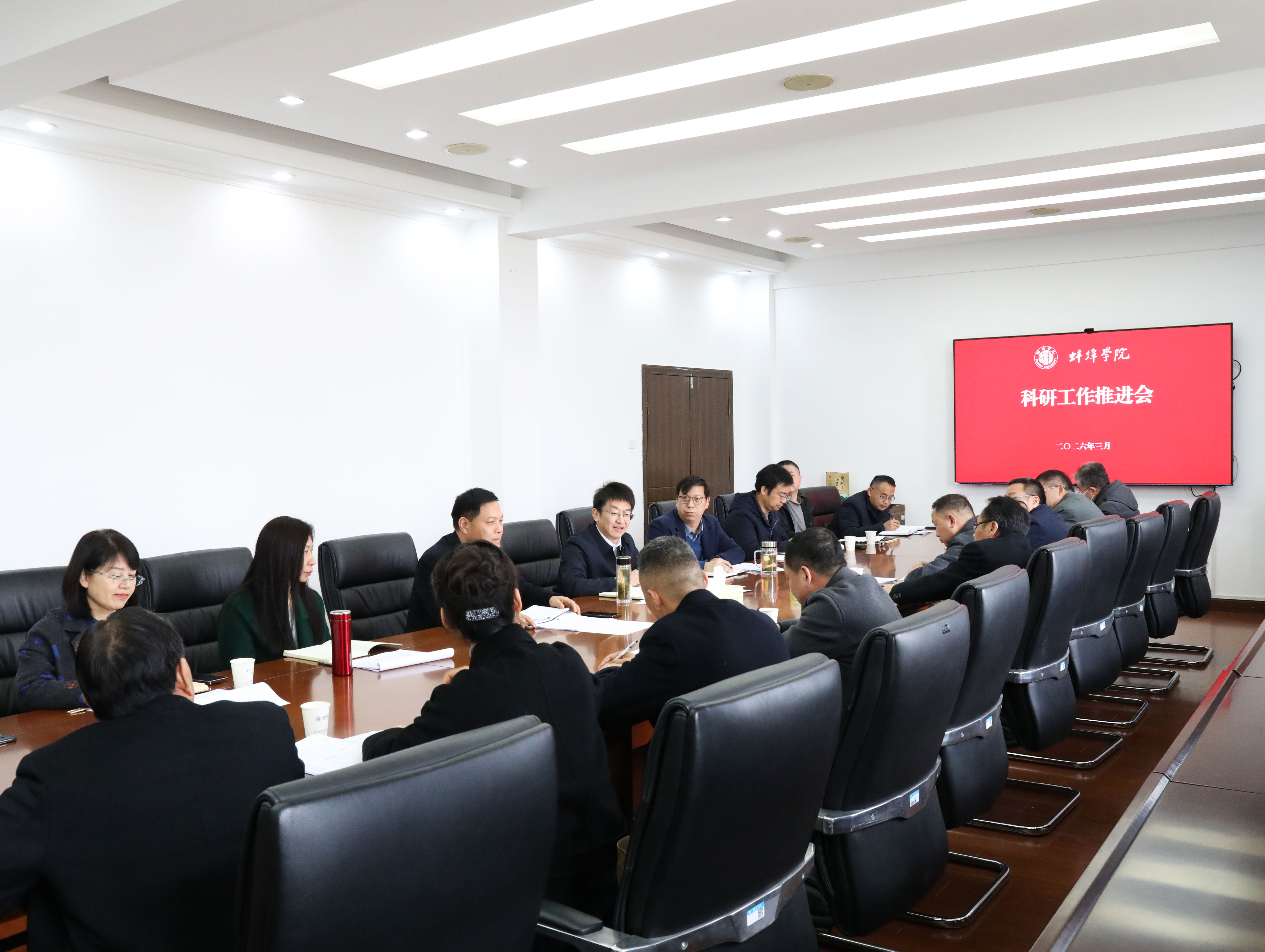 为进一步统一思想、明确目标、压实责任,全面推动2026年度科研工作高质量发展,3月11日上午,学校在行政楼四楼第二会议室召开2026年度科研工作推进会。校长张亚新出席会议并讲话,党委委员、副校长郭有强主持会议。科研处负责人、各二级学院(部)院长、继续教育学院院长及科研处相关人员参加会议。