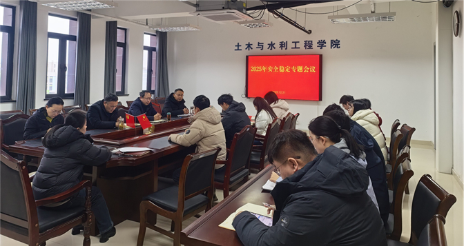 为落实学校安全稳定工作布置会精神,筑牢校园安全防线,2025年12月31日上午,土木与水利工程学院在理工楼418第一会议室召开安全稳定工作布置会议。会议由学院党委书记张兆亮、院长戚晓明主持,学院领导班子成员、各科室负责人、教研室与实验室主任、全体辅导员等参加了会议。