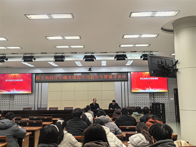 为深入学习贯彻习近平总书记关于树立和践行正确政绩观的重要论述,推动正确政绩观融入教育教学、科研创新和人才培养全过程,3月19日下午,土木与水利工程学院和材料与化学工程学院联合举办树立和践行正确政绩观专题辅导讲座。两个学院领导班子成员、全体党员教师及学生党员代表参加讲座,土木与水利工程学院党委书记张兆亮主持了讲座会。