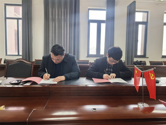 学习结束后,各党支部书记依次汇报2026年度党建工作、理论学习及主题党日活动计划,详细阐述年度重点任务、具体实施举措和预期工作目标。张兆亮书记对各支部计划给予肯定,针对部分计划不够细化、举措不够具体等问题提出针对性指导意见,要求各支部进一步细化工作方案、明确责任分工,确保各项党建工作落地落细、见实见效。汇报结束后,学院党委与各党支部书记签订《2026年度党支部党建工作目标管理责任书》,责任书明确了年度党建工作目标任务、责任分工和考核标准,进一步压实基层党建工作责任,构建起“党委抓总、支部落实、全员参与”的党建工作格局,为全年党建工作有序高效开展奠定坚实基础。