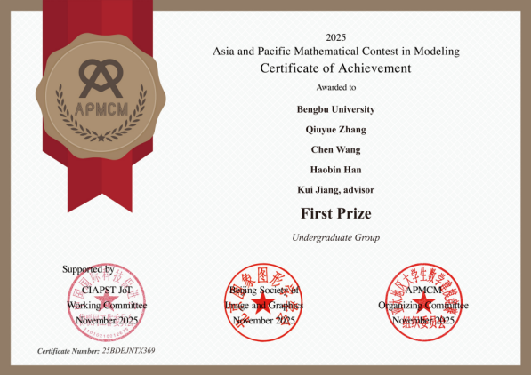 近日,第十五届亚太地区大学生数学建模竞赛(APMCM)获奖名单揭晓。蚌埠学院学子再创佳绩,荣获一等奖2项、二等奖4项、三等奖9项,共计15项大奖,获奖数量与质量均保持良好发展态势。